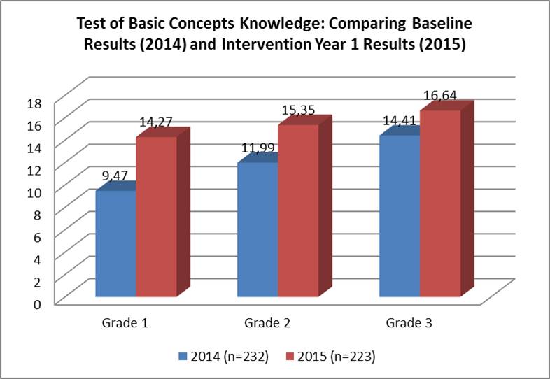 The TBCK was administered to all Foundation Phase learners in all four project schools before the start of the project in 2014. This is when the Baseline data was collected.