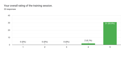 Every participant rated the training highly: 94% gave it the top score of 5/5, and the remaining 6% gave it 4/5.