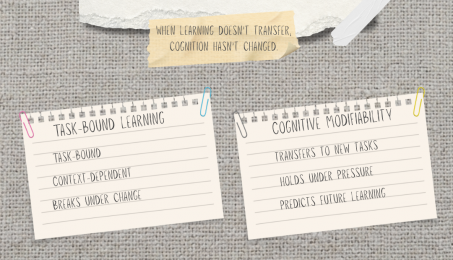 Cognitive Modifiability: Transfers to new tasks and holds under pressure.